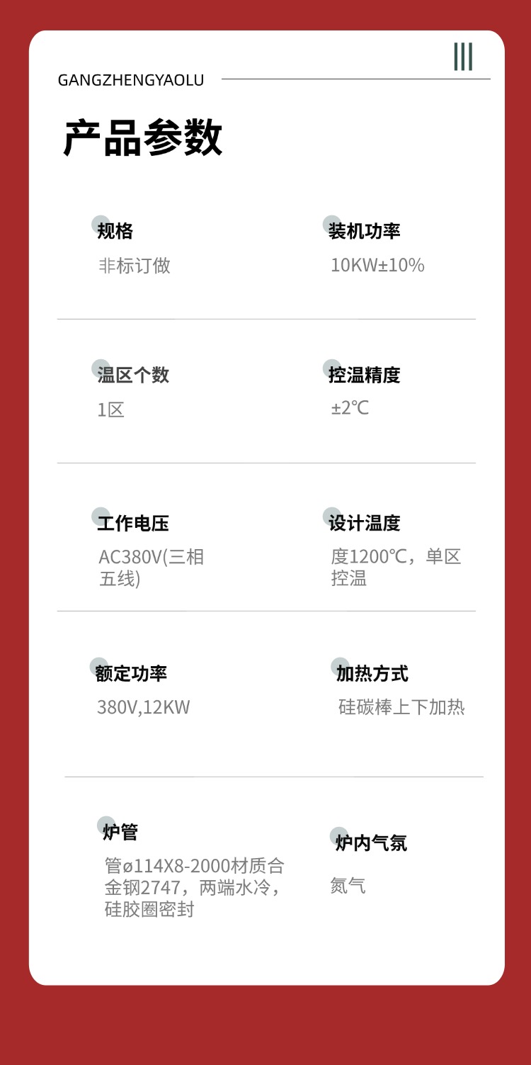 • 鋰電材料領(lǐng)域:可用于三元 / 磷酸鐵鋰正極焙燒等工藝,為鋰電材料的制備提供穩(wěn)定、***的高溫環(huán)境。