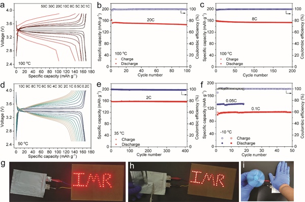 圖2固態鋰金屬電池的寬溫、倍率及安全性能測試