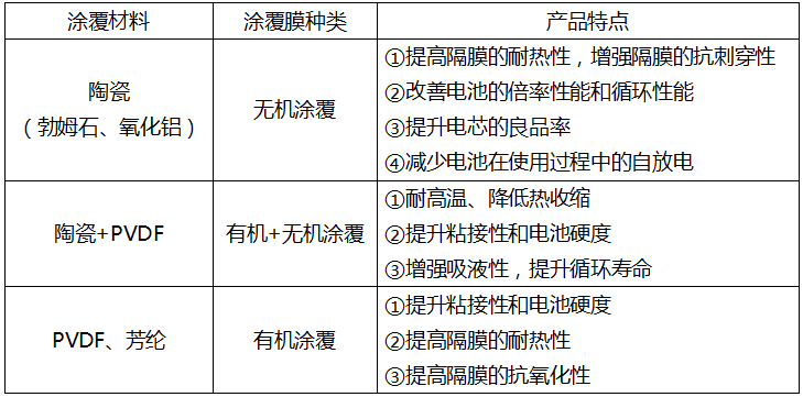 當前市場上涂覆材料種類主要分為無機涂覆、有機涂覆、有機+無機涂覆三種方式。