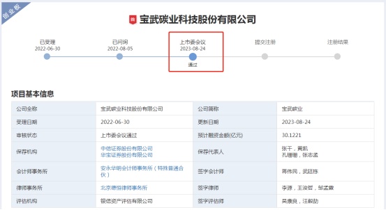 深交所官網(wǎng)顯示,8月24日,寶武碳業(yè)科技股份有限公司(簡稱“寶武碳業(yè)”)創(chuàng)業(yè)板IPO獲上市委會(huì)議通過,中信證券和華寶證券聯(lián)合保薦。