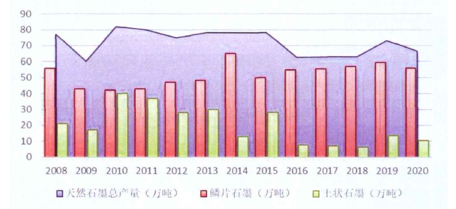 2008-2020年國內(nèi)天然石墨產(chǎn)量