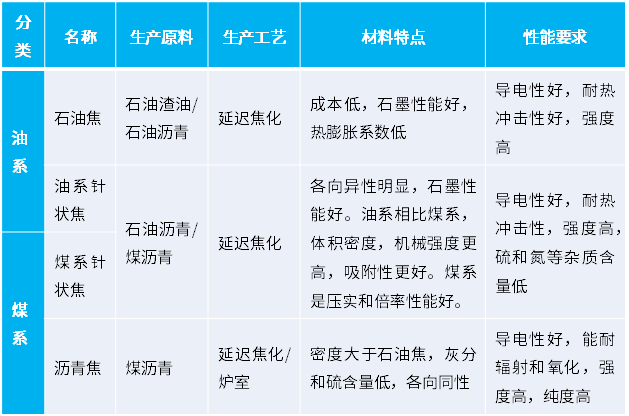 人造石墨原材料分類