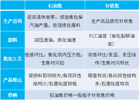油系和煤系焦原料對比
