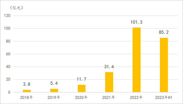 陽(yáng)光電源儲(chǔ)能業(yè)務(wù)營(yíng)收(2018-2023年H1)