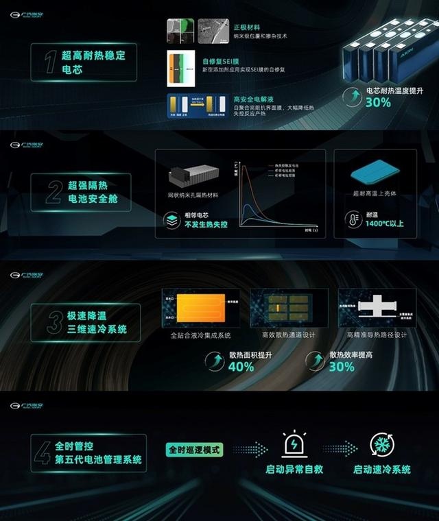 2021年3月10日,廣汽埃安發布新一代動力電池安全技術--彈匣電池系統安全技術。彈匣電池是從電芯本征安全提示,到被動安全強化,再到主動安全防控的一整套安全技術。彈匣電池四大核心包括了超高耐熱穩定的電芯、超強隔熱的電池安全艙、極速降溫的速冷系統以及全時管控的第五代電池管理系統。