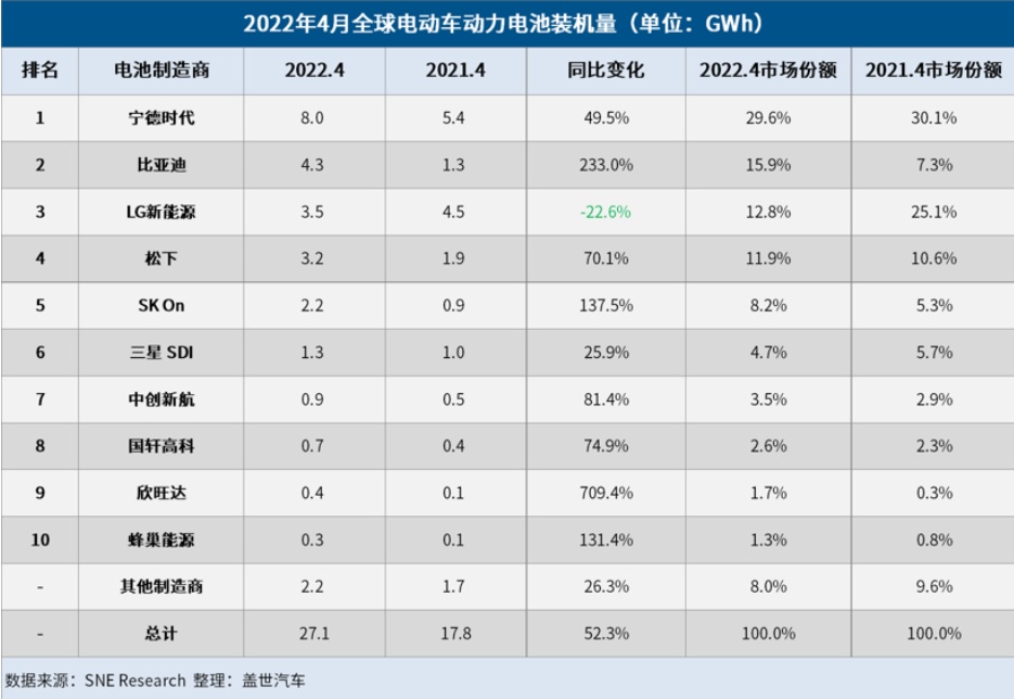 根據(jù)SNE最新數(shù)據(jù),4月份,蜂巢能源已經(jīng)躋身全球裝機(jī)量TOP10。