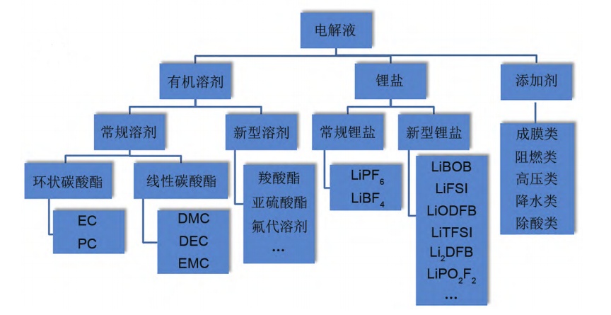 電解液基本組成(來源:張群斌等,《廢舊電池電解液回收及高值化利用研發(fā)進(jìn)展》)