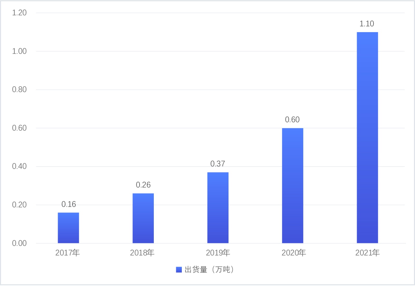 2017–2021年硅基負極材料出貨量(公開資料整理)