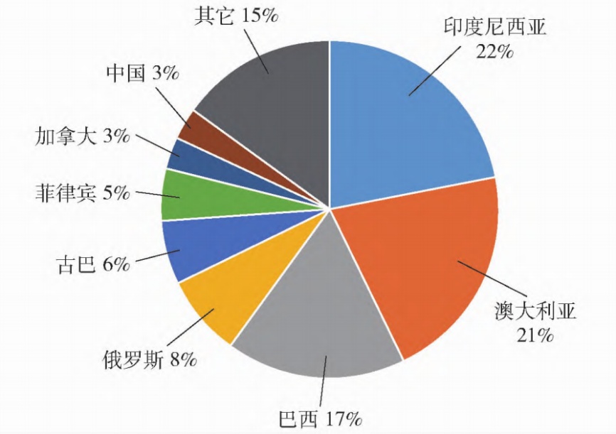 全球陸基鎳資源儲量分布情況(來源:米寰鵬等,《印度尼西亞鎳礦資源及利用概況》)