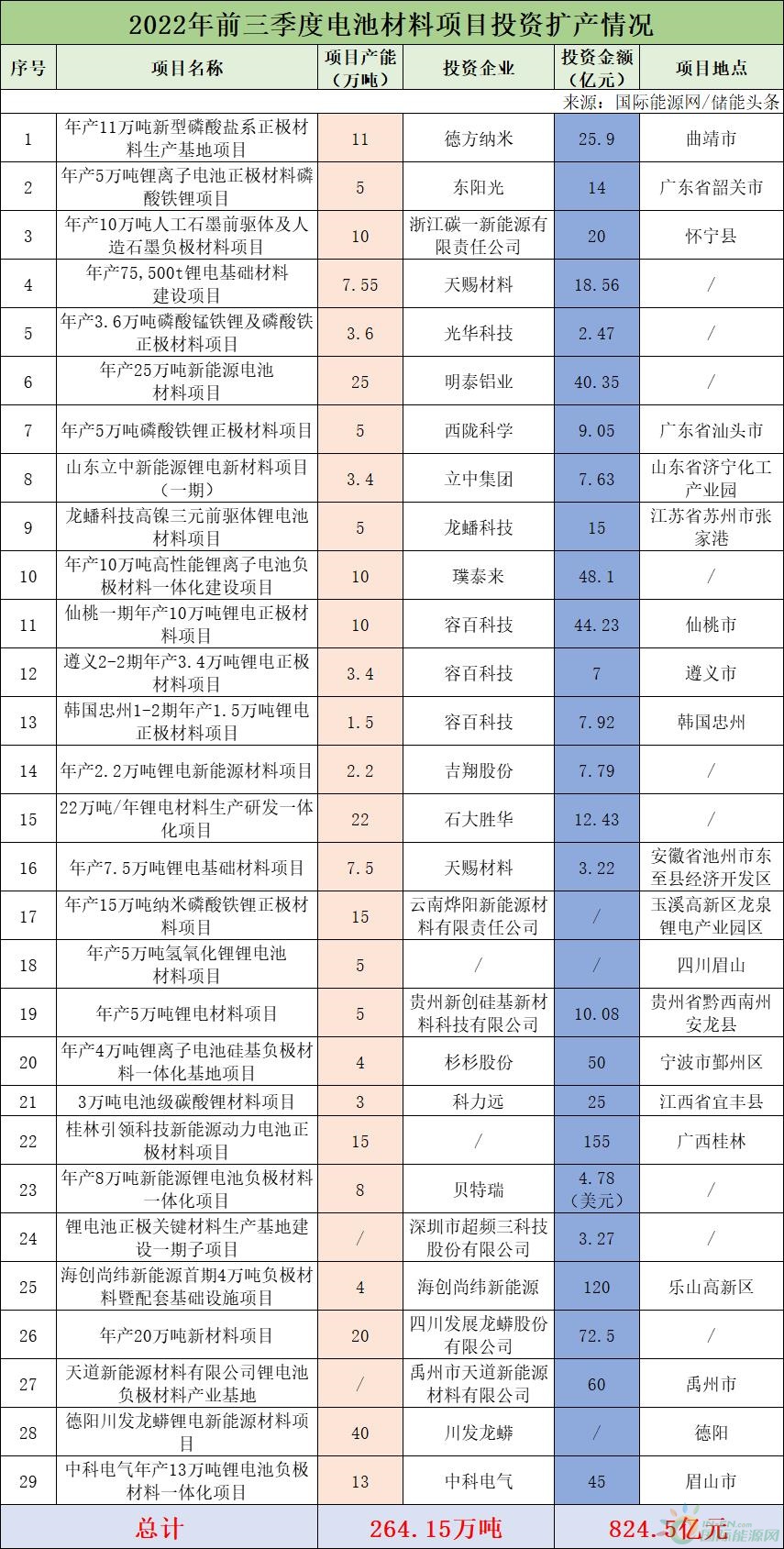中國粉體網訊 在全球“碳中和”的背景下,世界各地掀起了大規模的電動化浪潮,鋰電池作為新能源汽車的主要動力來源,可以說掌握了新能源行業發展的“命脈”。自今年以來,國內鋰電池產業鏈的投資熱度高漲。據國際能源網/儲能頭條不完全統計,2022年前三季度各個鋰電池企業投資擴產項目多達97個,投資金額累計超4609.07億元,新增裝機規模超726GWh!