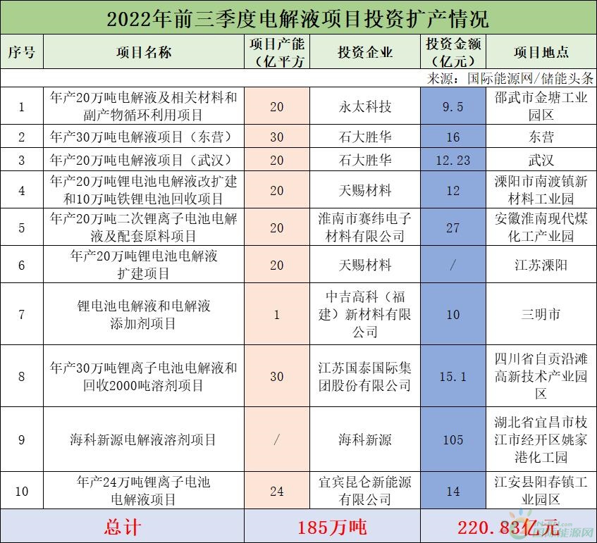 8月2日,永太科技子公司邵武永太擬投資9.5億元,建設電解液及相關材料和副產物循環利用項目,涵蓋20萬噸電解液、2萬噸電解質鹽、70萬噸硫酸鹽的生產能力。