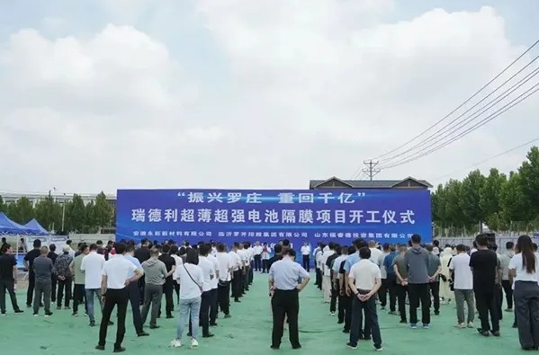 7月15日,山東省臨沂市羅莊區瑞德利超薄超強高端電池隔膜制造項目舉行開工儀式。