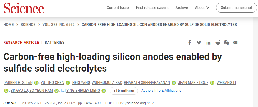 為進一步提高硫化物全固態(tài)電池的能量密度,促進其應用,硅負極材料具有極佳的應用前景。綜合利用硅負極和硫化物固態(tài)電解質的優(yōu)點,將硅負極應用于硫化物全固態(tài)電池,可以在一定程度上抑制硅負極的缺點,并進一步發(fā)揚兩種材料體系的優(yōu)勢,對實現(xiàn)高能量密度硫化物全固態(tài)電池有巨大的推動作用。比如: