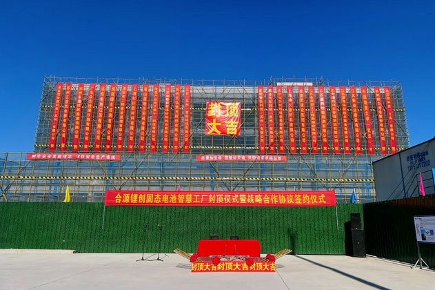 12月22日,合源鋰創(淮安)新能源科技有限公司首期固態電池智慧量產基地封頂儀式在江蘇淮安市淮安區圓滿舉辦。