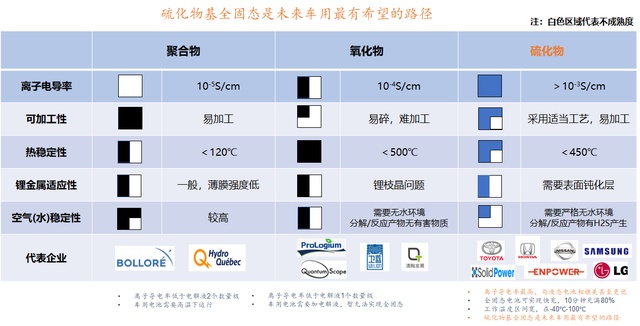 楊凝:聚合物目前發展相對受限,氧化物被寄予厚望,但有較嚴重的界面問題,因此更多是半固態產品;硫化物電導率最好,電化學窗口寬,但因材料性質需改性或進行涂覆,對加工環境有獨特要求,因此產業化難度較大。