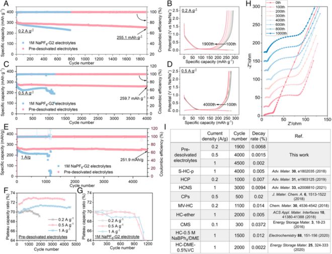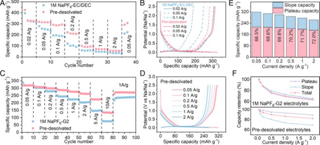圖3基于預脫溶劑化電解液的硬碳的電化學性能