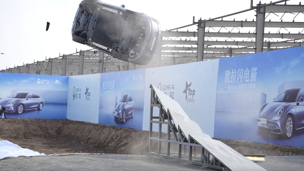 國(guó)內(nèi)首次電動(dòng)車高速螺旋翻滾測(cè)試安全直線拉滿