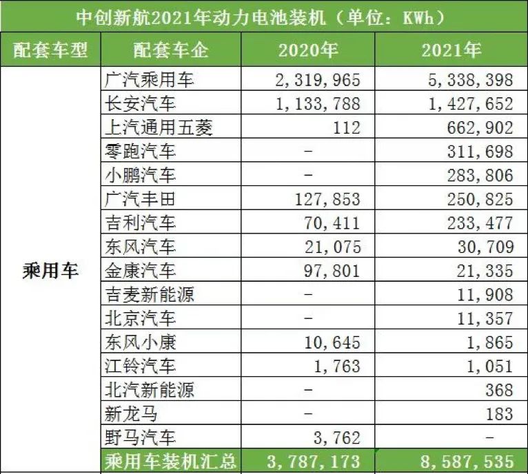 事實情況也的確如此。2021年,在中航配套裝機量中,廣汽占比達66%。此外,上汽通用五菱、小鵬、零跑也接連下單,裝機量占比分別為8%、3%和4%。