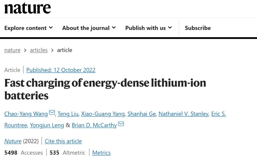這項研究是由賓夕法尼亞州立大學材料與工程學杰出教授王朝陽(Chao-Yang Wang)等多位研究人員完成的,并發表在了 10 月 12 日的 Nature 上。王朝陽教授是燃料電池和二次電池領域的專家學者,并于 2019 年 12 月當選為美國國家發明家科學院院士。