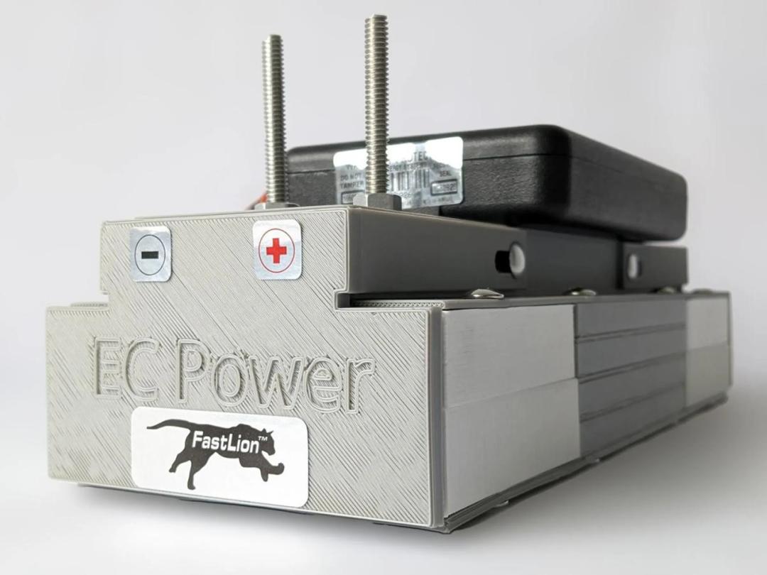 專為電動汽車開發的 10 分鐘快速充電電池,頂部的黑匣子包含一個控制模塊的電池管理系統。