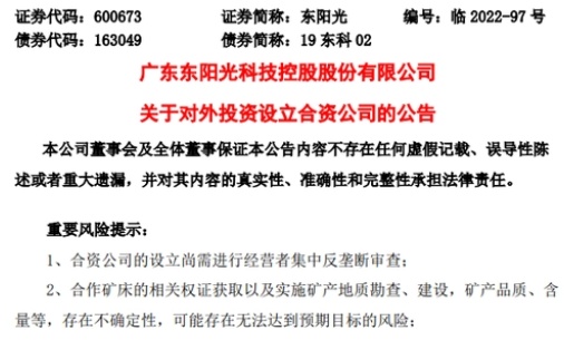11月7日晚間,東陽光(600673)披露公告稱,公司控股子公司獅溪煤業(yè)與廣汽零部件、遵義能源簽署《合資合同》,擬在貴州省遵義市共同投資設立合資公司,從事相關礦產(chǎn)地質勘查和礦產(chǎn)資源的投資管理經(jīng)營。