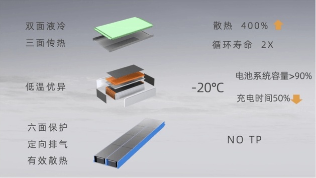 (圖片:通過(guò)改變散熱結(jié)構(gòu),SPS和“麒麟”賦予電池更強(qiáng)的散熱效率,適應(yīng)更高的充能效率)