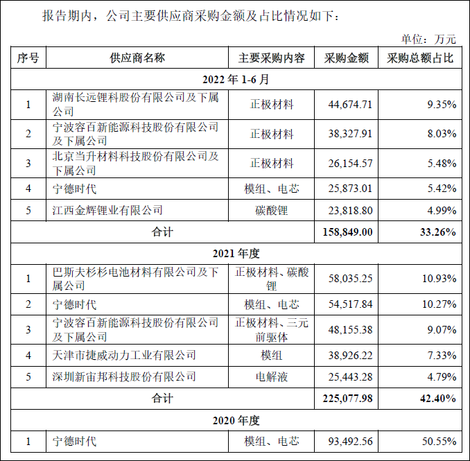蜂巢能源主要供應(yīng)商采購(gòu)金額及占比 數(shù)據(jù)來源:蜂巢能源招股書