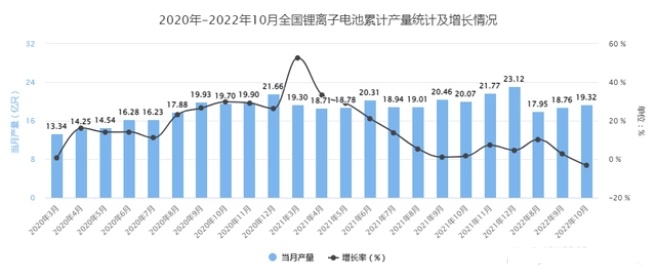 2022年10月全國鋰離子電池當月產量超19.3億只