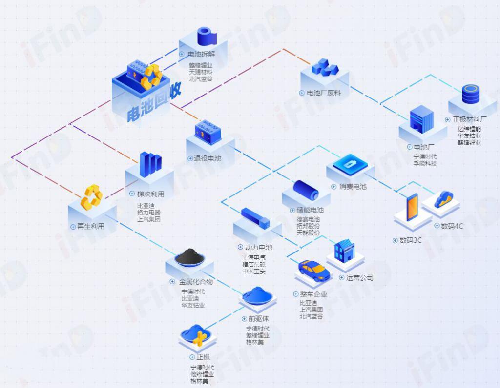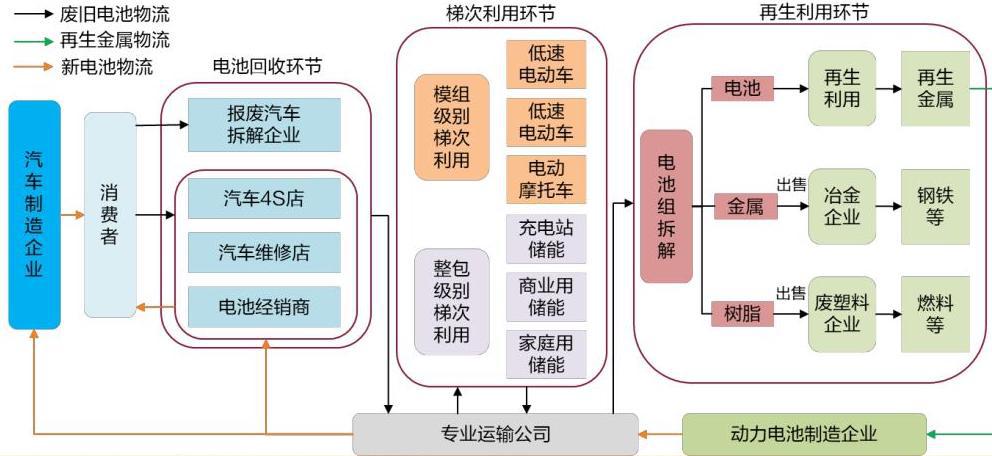 動力電池回收行業的產業鏈包括: