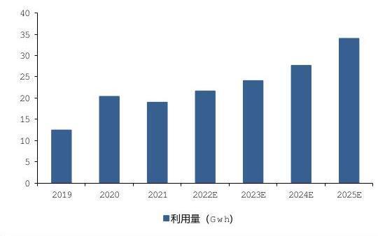 圖 中國動力電池梯次利用量預測