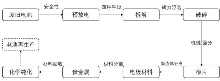 圖 動力電池拆解回收工藝流程圖