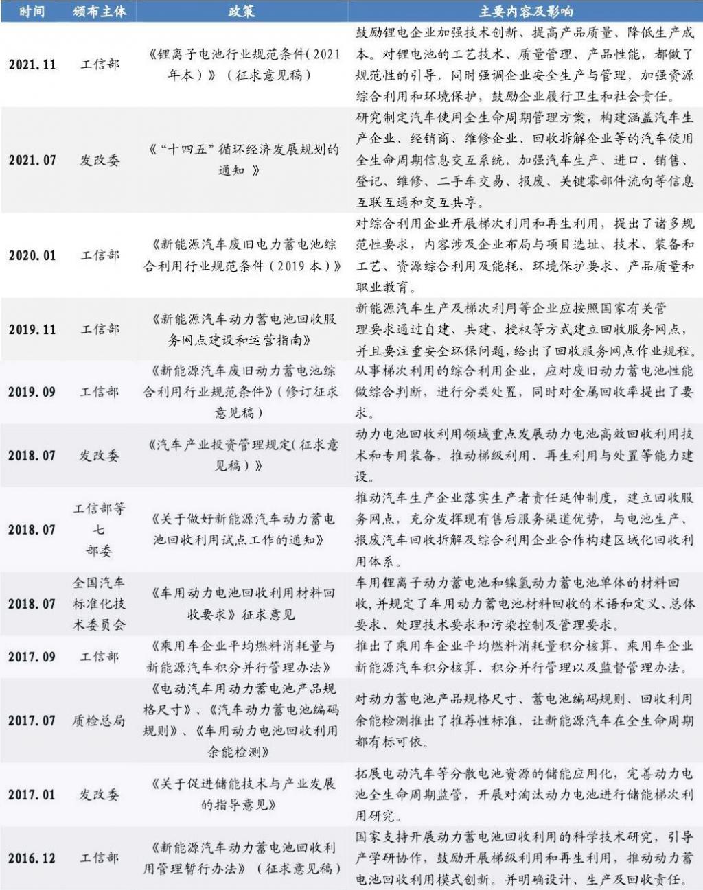 (3)動力電池回收相關政策利好行業發展
