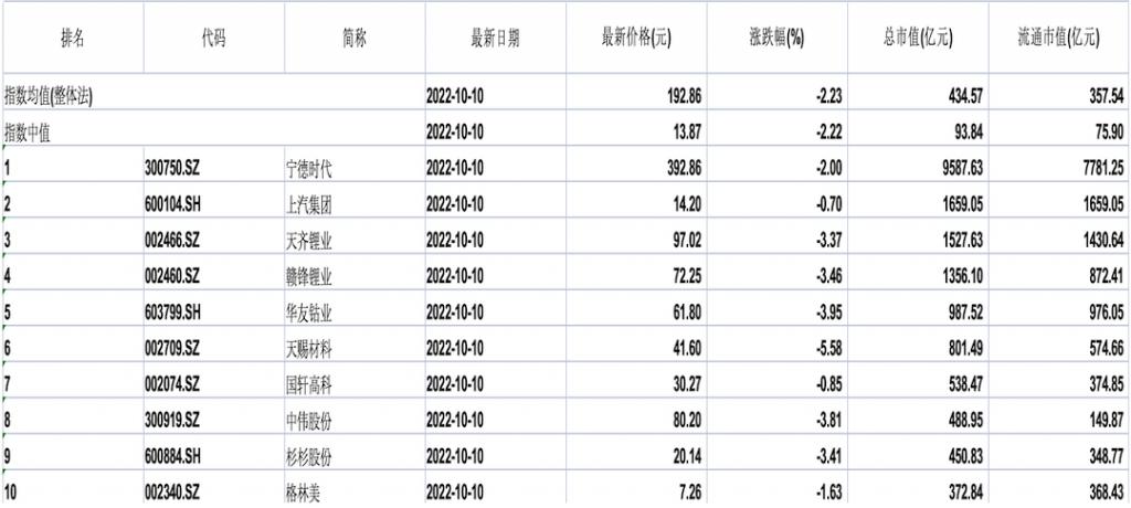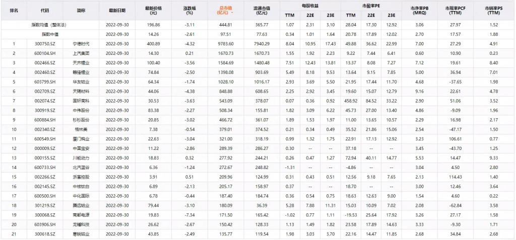 中國主要企業有寧德時代[300750.SZ]、上汽集團[600104.SH]、天齊鋰業[002466.SZ]、贛鋒鋰業[002460.SZ]、華友鈷業[603799.SH]、天賜材料[002709.SZ]、國軒高科[002074.SZ]、中偉股份[300919.SZ]、杉杉股份[600884.SH]、格林美[002340.SZ]等