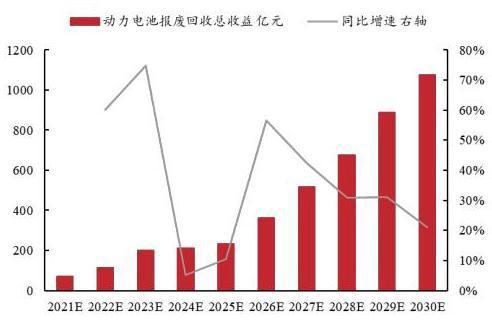 圖 2021-2030年預計動力電池回收收益