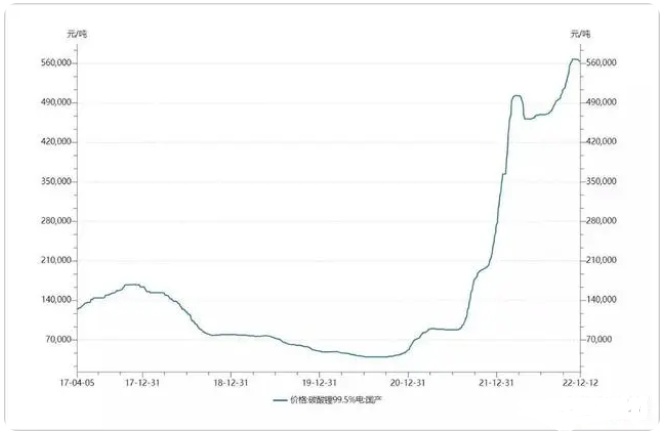 當所有人預期鋰價高位見頂的時候,瘋狂的鋰礦還在不斷撩動市場的神經。11月中旬,電池級碳酸鋰價格已經突破每噸60萬元,相比年初價格翻倍有余,距離2年前的低點,漲幅已接近15倍。