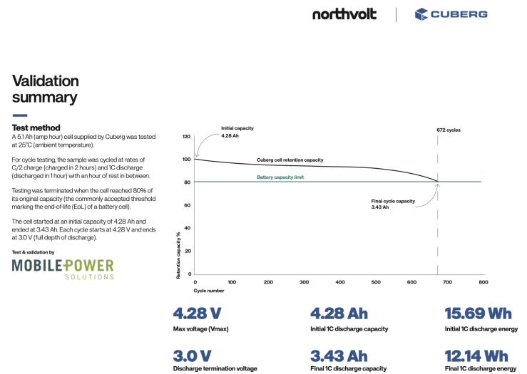 據(jù)外媒報道,Northvolt的子公司Cuberg在開發(fā)下一代鋰金屬電芯技術(shù)方面達(dá)到了新的里程碑。通過不斷發(fā)展電芯技術(shù),Cuberg的電芯循環(huán)壽命幾乎翻番,并且提高了能量密度和功率。
