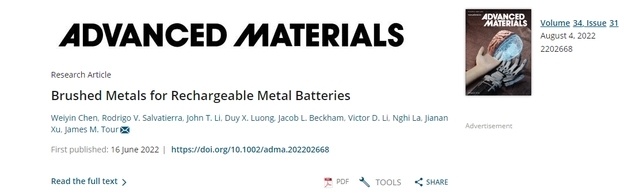Tour說,“這將簡化大容量電池的制造,同時大大改善它們。將這些粉末狀固體刷在鋰金屬陽極上,可以顯著減少枝晶的形成,從而減少電池短路。”