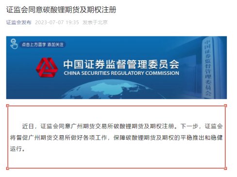 “白色石油”碳酸鋰期貨即將上線!證監會同意廣期所碳酸鋰期貨及期權注冊