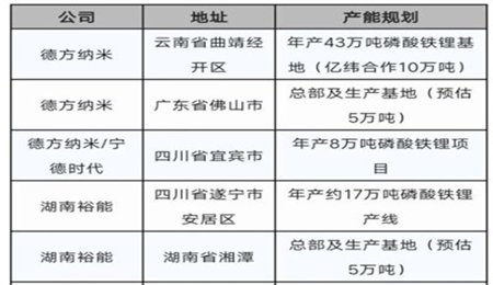 全國磷酸鐵鋰基地統計表