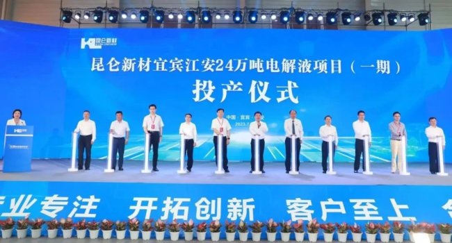 7月25日,昆侖新材宜賓江安24萬噸電解液項目(一期)投產儀式舉行。昆侖新材宜賓江安24萬噸電解液項目總投資50億元,占地172畝,分兩期進行建設。一期產能為12萬噸/年,待二期項目產能12萬噸/年建成后,總產能將達24萬噸/年,投產后預計年產值超100億元。宜賓昆侖一期投產的產線,采用并行生產模式...