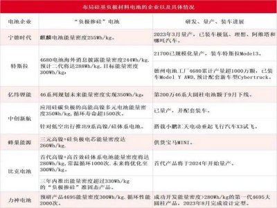 硅基負極的應用正成為電池性能差異化的“必爭之地”,2021年以來,特斯拉、寧德時代、億緯鋰能等頭部企業相繼開始布局硅基負極的動力電池產品。憑借其在鋰電應用中高能量密度、高倍率等優勢,在電動工具、消費電子等市場硅基負極的應用已經屢見不鮮,華為、榮耀、小米等頭部手機廠商也開始在旗艦機型上使用硅碳負極材料...