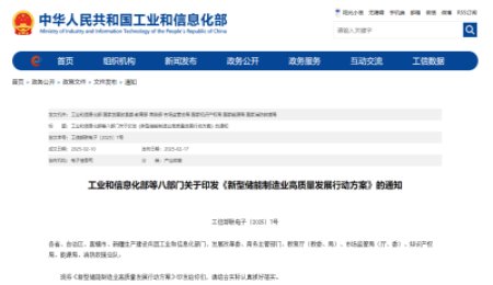 工信部等八部門(mén)印發(fā)《新型儲(chǔ)能制造業(yè)高質(zhì)量發(fā)展行動(dòng)方案》:支持電池固態(tài)化發(fā)展