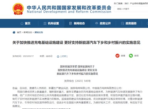 ?國家發展改革委《關于加快推進充電基礎設施建設 更好支持新能源汽車下鄉和鄉村振興的實施意見》