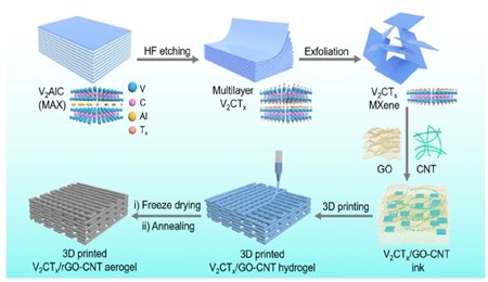 金屬鈉具有理論容量高、成本低、資源豐富等優勢,已成為鈉離子電池理想的負極材料。然而,鈉金屬負極的現實可行性仍然受到不受控制的鈉枝晶問題的阻礙。近日,鄭州大學王燁教授、徐俊敏副教授、新加坡科技設計大學(SUTD)楊會穎副教授通過直接墨寫3D打印技術制備了一種人工三維分級多孔親鈉性V2CTx/rGO-C...